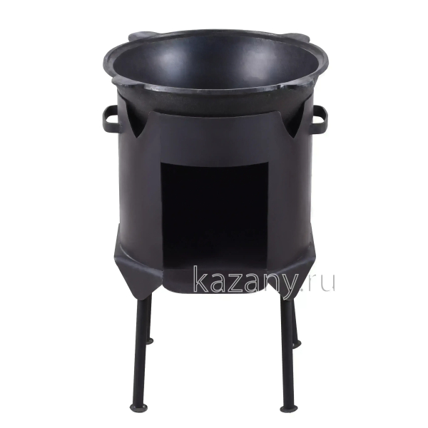 Стальная печь изготовлена из 3-миллиметрового листа, окрашенного особым термостойким составом, который надёжно защищает поверхности от коррозии и множества других негативных факторов. Печь имеет четыре устойчивые съёмные ножки и весит всего 10 кг. Для переноски по бокам печи предусмотрены две прочные стальные ручки. Несмотря на свою простоту, такая конструкция отлично справляется с возложенными на неё задачами.