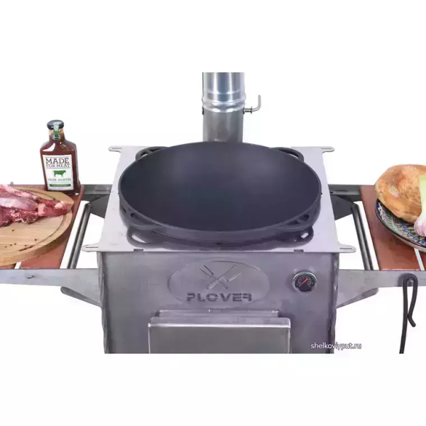 Очаг для казана "PLOVER” – конструкция, которая служит как гриль, мангал, печь. В производстве очага использована жаропрочная сталь толщиной 5 мм, обеспечивающая хорошую прочность и устойчивость. Для удобного перемещения по периметру участка конструкция оснащена компактными колесиками.