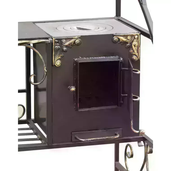 Кованый мангал “Антилопа с печкой” отлично подходит для универсального использования на небольших площадках перед таунхаусом или зоной отдыха. Конструкция с жаровней и печью изготовлена из прочного металла, устойчивого к механическим воздействиям и перепадам температур.