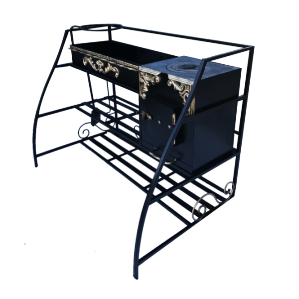 Жаровня,Печка,Дымоход,Колосник,Совок,Кочерга,Съемное кольцо под казан,Полка