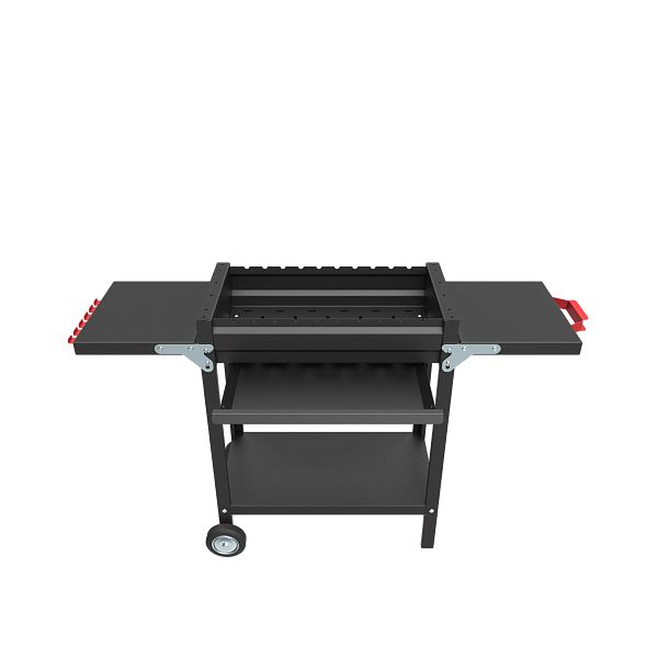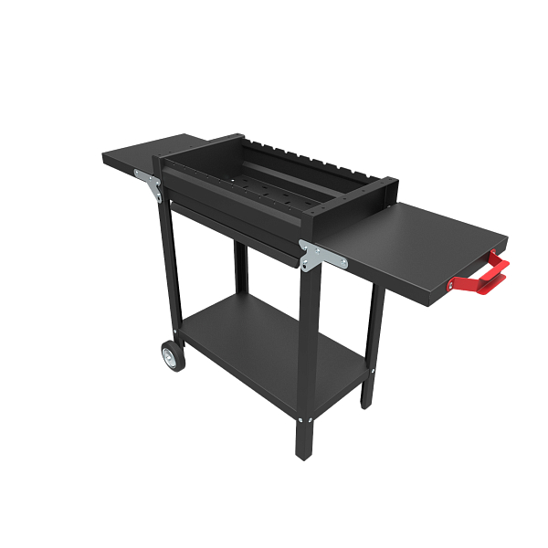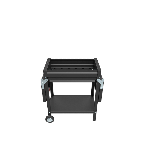 - Одна из полок снабжена рукояткой для перемещения (устанавливается на стороне противоположной колесам)