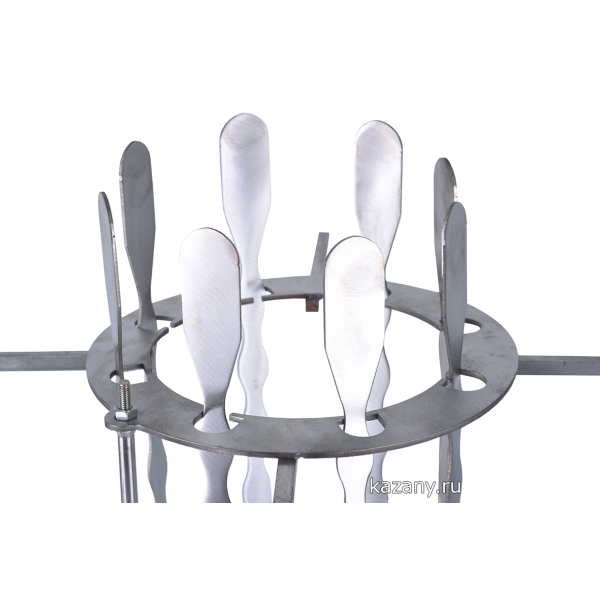 Тандырный набор "Хан" (малый) содержит 8 шампуров небольшого размера. Комплект предназначен для приготовления шашлыка из мяса, овощей, морепродуктов, грибов. Особенность аксессуаров в том, что они соединяются в единую конструкцию с помощью дополнительных комплектующих и погружаются в тандыр. В комплекте даже предусмотрен элемент, который закрепляет набор на горловине тандыра и позволяет легко его вытащить, когда блюдо будет готово.