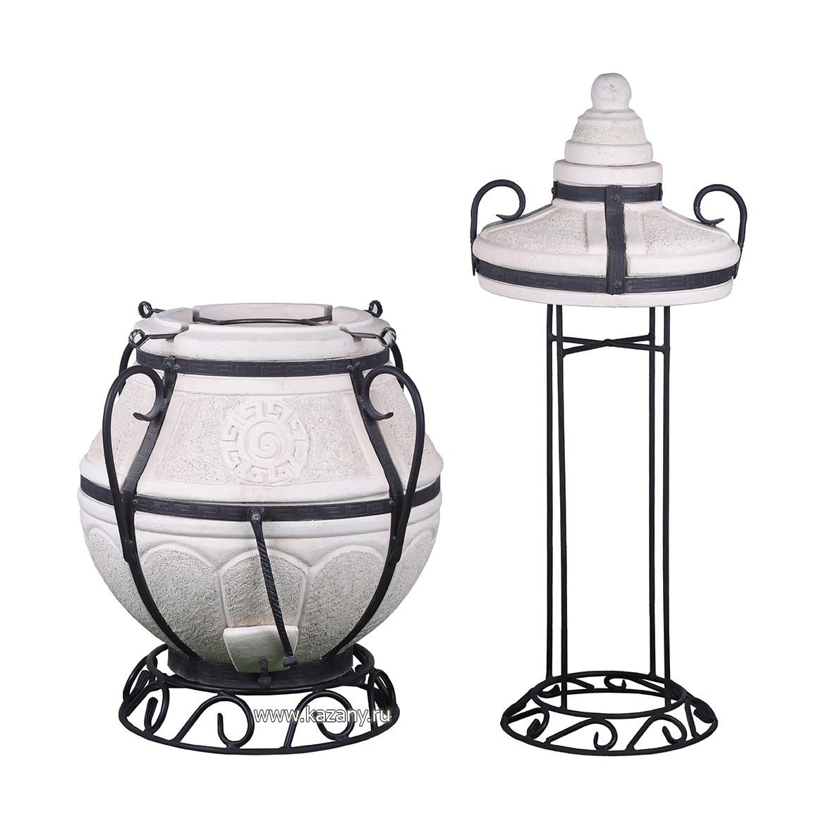 Тандыр выделяется своими эстетическими характеристиками - у него красивые выразительные формы. Стенки жаровни усилены с помощью металлического кованого каркаса, который гарантирует долговечность печи. При эксплуатации на стенках может возникнуть сеть микротрещин, которая появляется по естественным причинам. Микроскопические трещины не являются следствием дефекта. Изделие с таким натуральным узором служит десятки лет.